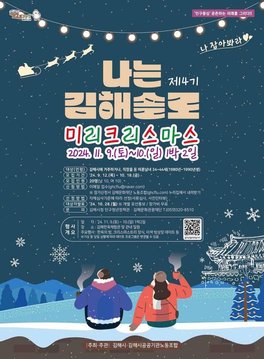 김해시, '나는 김해솔로' 4기 참가자 모집: 사랑을 찾는 크리스마스 이벤트